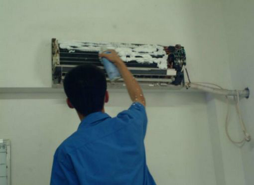 | 阜城空调维修师傅给阜城用户上门维修清洗空调。 |